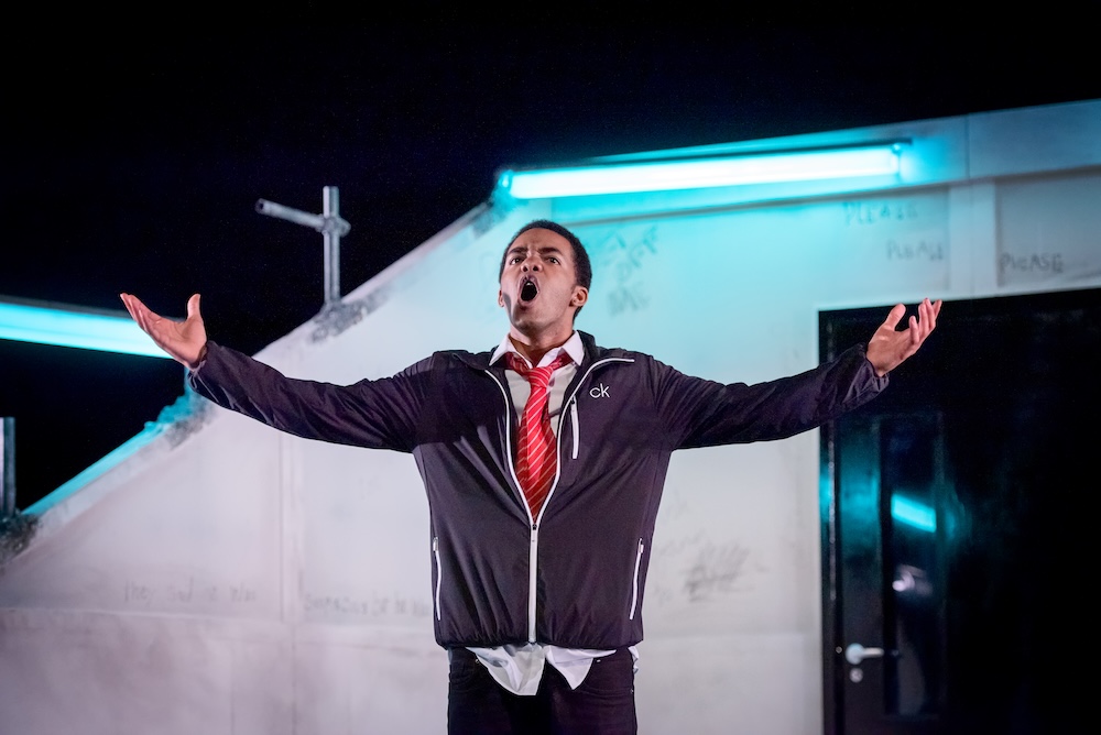 Fifteen-year-old Reece is roughly accosted by the police outside M&S. His face presses into the wet gravel as a policeman digs a knee into his back.
